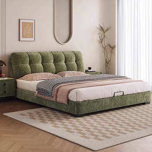• 2025新款 奶油风雪尼尔绒泡芙布艺床现代简约小户型主卧双人储物床