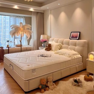 意式 现代简约轻奢床北欧奶油风系网红高靠背1.8米主卧室双人婚床