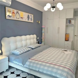 政府补贴蓝色理想奶油风婴儿绒泡芙床现代简约主卧1.8m双人软包床