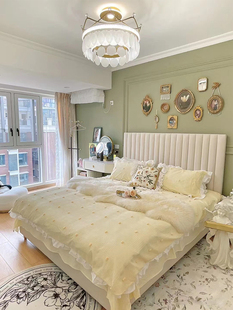 大司马 轻奢 花瓣床白色奶油系小户型次卧双人床科技绒布艺床法式
