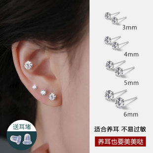 • 999纯银耳钉女养耳洞耳骨钉小众高级感锆石耳蜗钉水钻耳环银耳饰