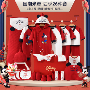 迪士尼婴儿礼盒米奇秋冬初生宝宝衣服红色新生儿满月百天高档礼物