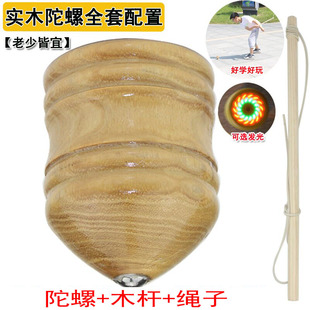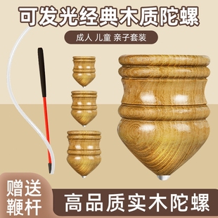 发光旋转陀螺80后怀旧冰嘎成人健身抽陀螺鞭绳子老式 木头玩具儿童