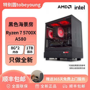 A580黑色海景房游戏DIY电脑主机 5700X 超强4000元 神机R7
