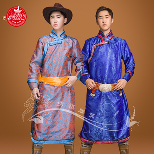 男士 包邮 春秋季 民族服饰演出舞蹈日常服装 蒙古袍长袍缎面男款 新款