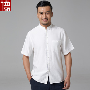 短袖 夏季 休闲衬衫 中式 澜风 立领疙瘩扣潮款 中老年唐装