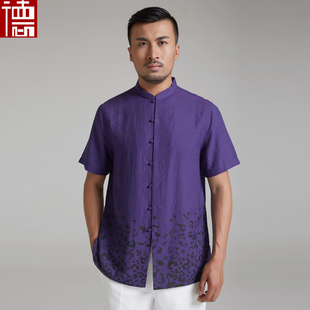 男短袖 上衣青年复古休闲立领上装 夏装 民族亚麻半袖 中式 中国风唐装