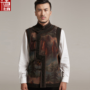 盘扣印花棉服中国风保暖上衣中正版 尔雅 男外套中式 羊毛唐装 冬季
