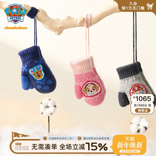 汪汪队儿童手套秋冬季 连指加绒加厚挂绳包指男童女童宝宝挂脖手套