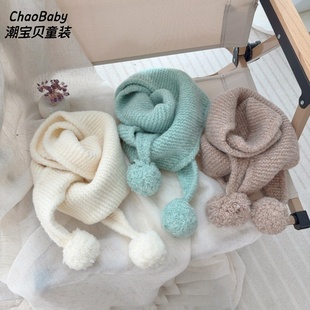 儿童围巾冬季 针织防风防寒男女宝宝毛球毛线三角巾保暖护颈围脖潮