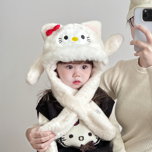 • 儿童帽子毛绒帽围巾一体冬季 保暖护耳宝宝男女童可爱企鹅耳朵会动