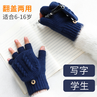 儿童手套男童可写字冬季 保暖小孩五指翻盖男孩学生半指写作业冬天