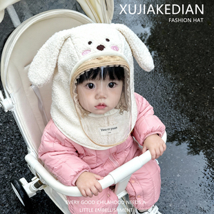 宝宝帽子秋冬季 保暖加厚围巾一体帽男孩女儿童防护面罩护耳毛绒帽