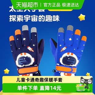 牧萌儿童手套男女童冬季 骑行保暖耐磨防水加绒加厚滑雪五指手套