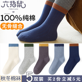 六指鼠100%纯棉a类无骨袜男童儿童袜子男宝宝秋冬季 女童全棉中筒