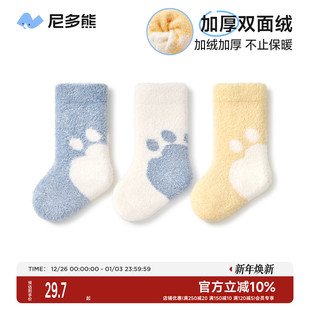 尼多熊儿童袜子冬季 加厚毛圈袜中大童棉袜保暖加绒男童袜抗菌