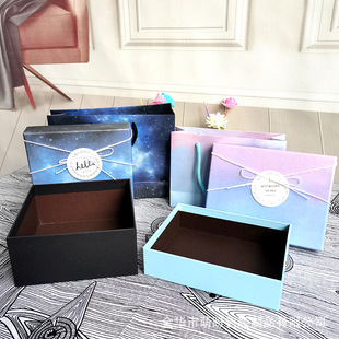 现货粉蓝渐变色礼品盒 盒天地盖带蝴蝶结礼盒 生日礼物包装