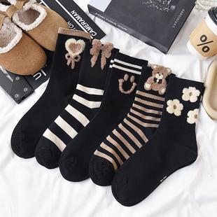 袜子女秋冬中筒袜羽毛纱笑脸蝴蝶结百搭外穿饰品韩版 长筒纯棉黑色