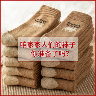 毛袜保暖袜长辈老人棉袜加厚驼色 5双骆驼加绒袜子男女加厚冬款