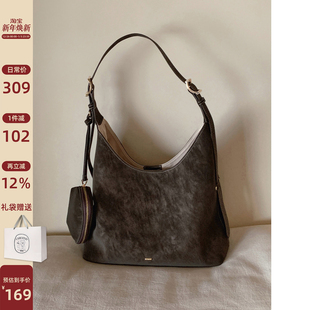 CASSILE卡思乐hobo包腋下包复古植鞣牛皮大容量单肩斜挎托特包