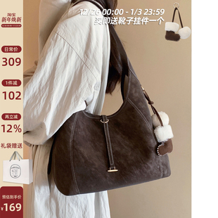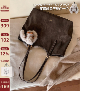 复古麂皮绒托特包女2025新款 小众通勤腋下包百搭大容量单肩包 时尚