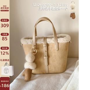 南风Chio2nd 真羊毛清冬栗岛托特包毛茸茸包包女冬手提单肩斜挎包