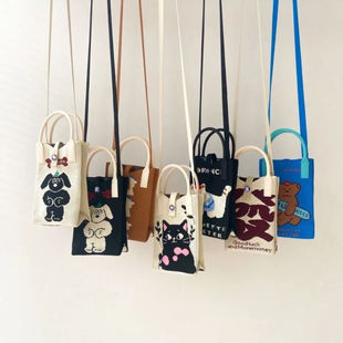 韩国in针织手机包学生卡通钥匙零钱小包包毛线手提袋单肩斜挎包