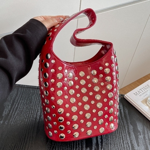 百搭大容量手提单肩包 饰托特包女时尚 2025新款 潮机车满天星铆钉装