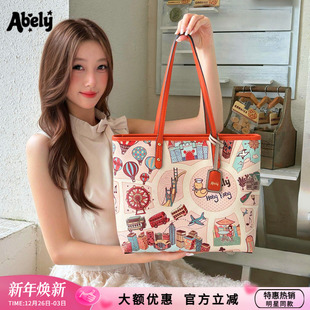 阿贝莉印花女包托特包包2025秋冬新款 单肩手提上班上课大容量包包