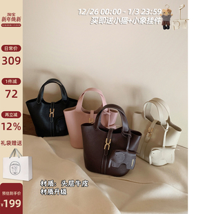 南风Chio2nd 头层牛皮水桶包包女真皮手提包菜篮子通勤单肩斜挎包