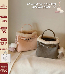 南风Chio2nd 真羊毛雪国秘语水桶包包女秋冬毛绒手提包单肩斜挎包