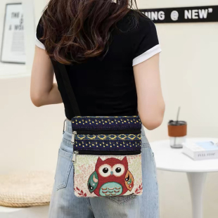 包包民族风斜挎包休闲手机包新款 女士轻便饭盒单肩小跨包 帆布时尚