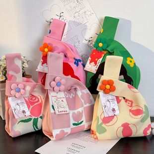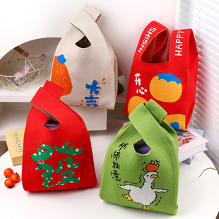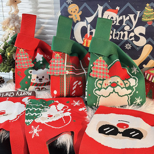 针织手提包新款 便当饭盒包上班杂物 圣诞节糖果袋平安夜礼品袋个性