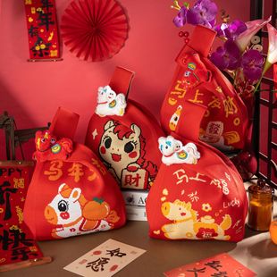 马年发财针织手提袋年货糖果礼品袋手拎包公司节日伴手礼大容量包