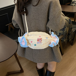 儿童个性 时尚 创意糖果单肩斜挎包 冬季 小众设计毛线编织包2026新款