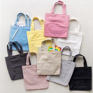 韩国romane糖果色可爱猫咪刺绣防水手提包轻便购物袋上课通勤小包