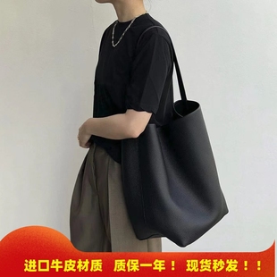 小众牛皮通勤托特包女真皮大容量水桶包2025新款 高级感单肩手提包