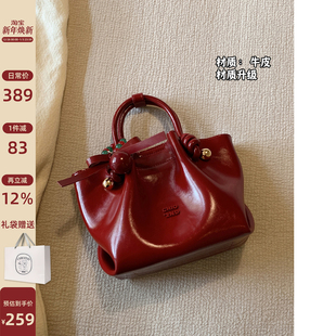 南风Chio2nd 冬月童话真皮牛皮小托特包包女秋冬红色手提单肩斜挎
