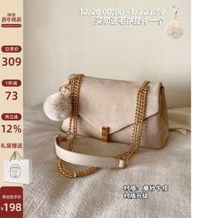 南风Chio2nd 质感通勤链条单肩斜挎包 磨砂牛皮栗木奶霜小方包冬季