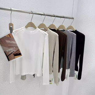 上衣 T恤 韩国单ONE领口小铁标后背明线 半高领软糯亲肤纯棉打底