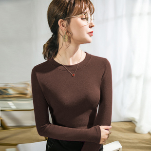 上衣 镂空爆款 正肩咖色紧身掐腰加绒打底衫 女内搭秋冬磨毛加厚长袖