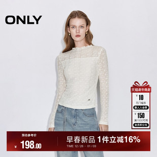 T恤 木耳边亲肤舒适弹力显瘦褶皱软糯肌理感长袖 ONLY2026春季 新款