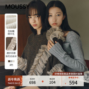 月影集慕斯羊绒随性挂脖飘带针织衫 气质宽松荡领显瘦毛衣 上衣法式