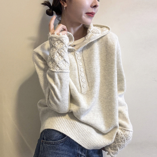 欧货女装 新款 打底毛衣潮 女欧洲站2025冬装 镂空钩花连帽羊毛针织衫