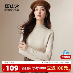 长袖 内搭针织打底衫 女半高圆领毛衣2025秋冬装 恒源祥100纯羊毛衫