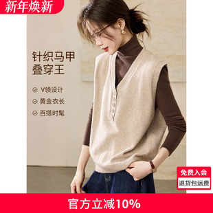 女 百搭休闲柔软舒适针织衫 沫晗依美V领纽扣设计马甲2025秋季 时尚