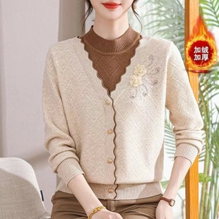 上衣羊毛衫 2025新款 百搭冬季 时尚 洋气打底 毛衣女加绒假两件针织衫