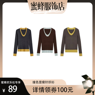 撞色假两件显瘦针织衫 二茵ERYIN秋冬新款 蜜蜂欢乐社