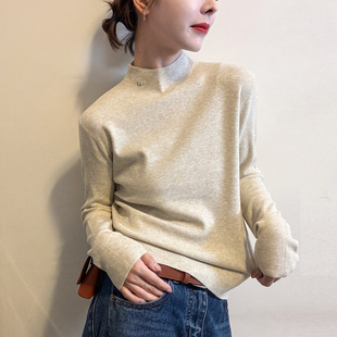 半高领长袖 高级灰色修身 秋冬2025新款 女装 针织上衣 内搭毛衣打底衫