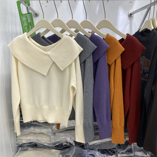 针织衫 法式 翻领长袖 时尚 显瘦不规则羊毛毛衣上衣潮 2025女冬新款